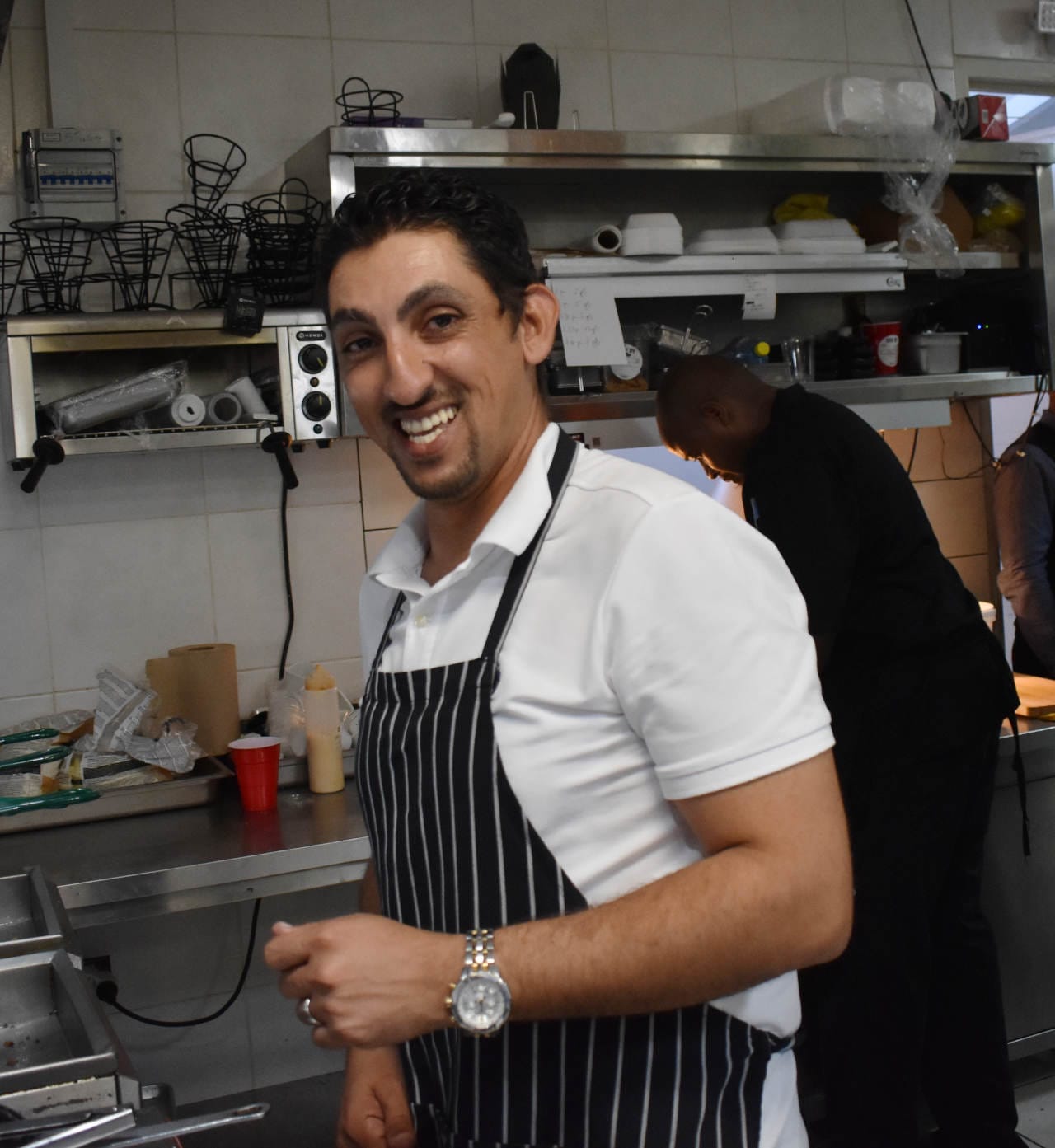 Known for his energy and warm welcome, he moves easily between the dining room and the kitchen, greeting guests, checking on dishes, and keeping the atmosphere lively and personal. His background in hospitality and his willingness to jump into service whenever needed, helped him to create a place that feels both professionally run and genuinely friendly.