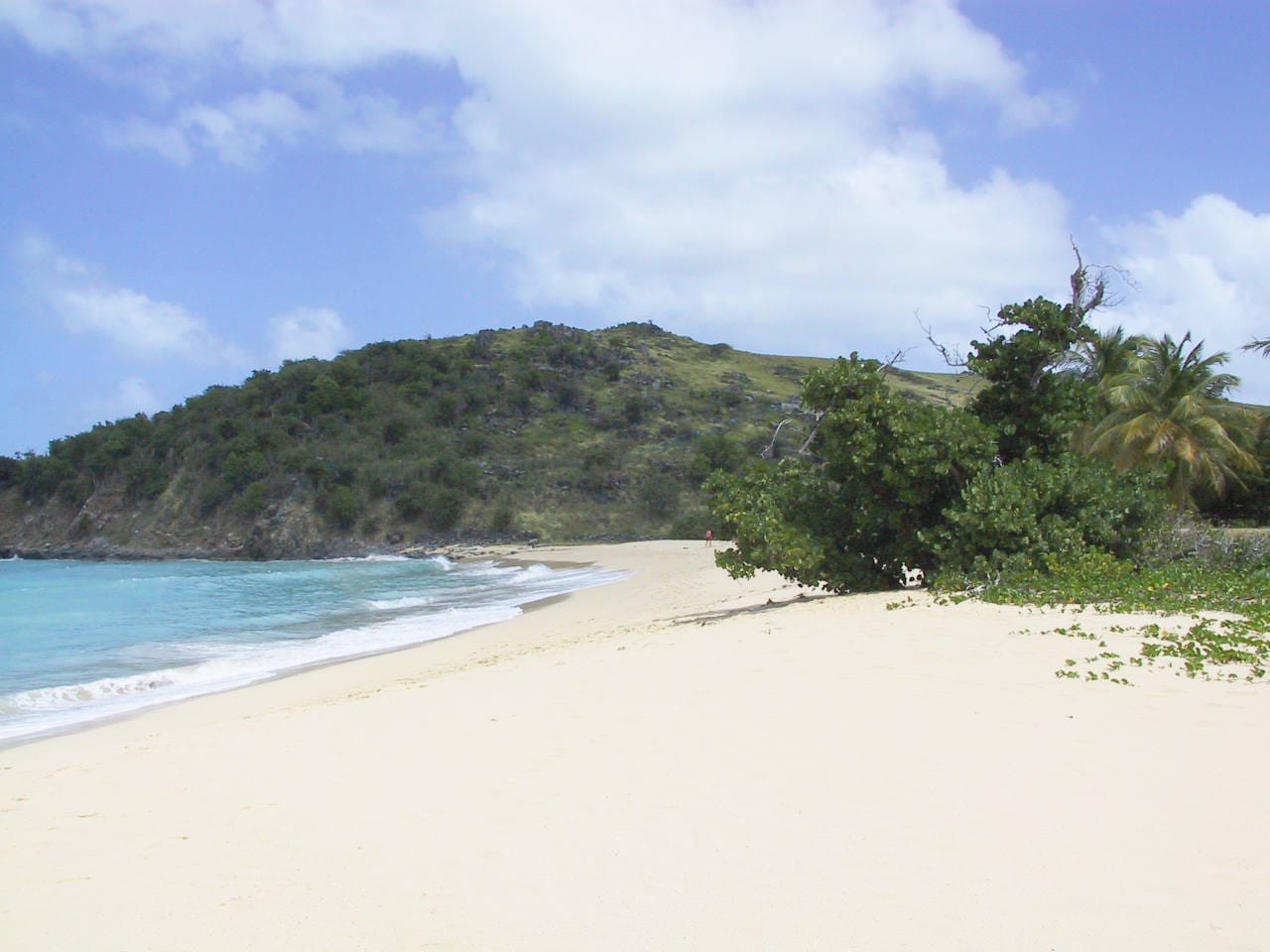 The beach itself stretches in a graceful curve, framed by lush green hills on both sides. The calm, clear water is ideal for swimming and snorkeling. Without the infrastructure of a developed beach, Happy Bay retains a sense of discovery that has largely disappeared from the island's more famous spots.