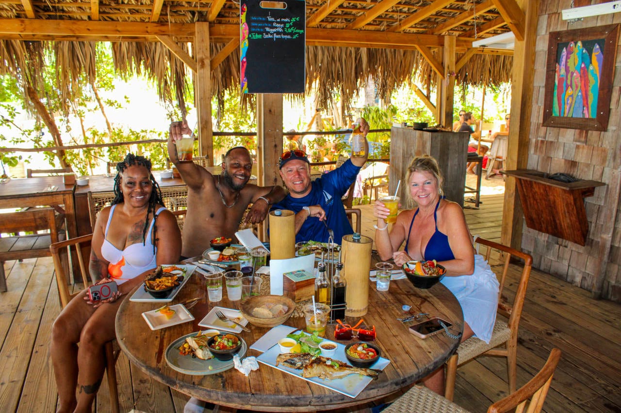 The food is one of Pinel's genuine pleasures. The beachfront restaurants serve fresh seafood dishes, grilled ribs and chicken, and the island's signature attraction: live lobster pulled from traps in the water just off the beach, grilled to order. It's as local and fresh as dining gets anywhere in the Caribbean.