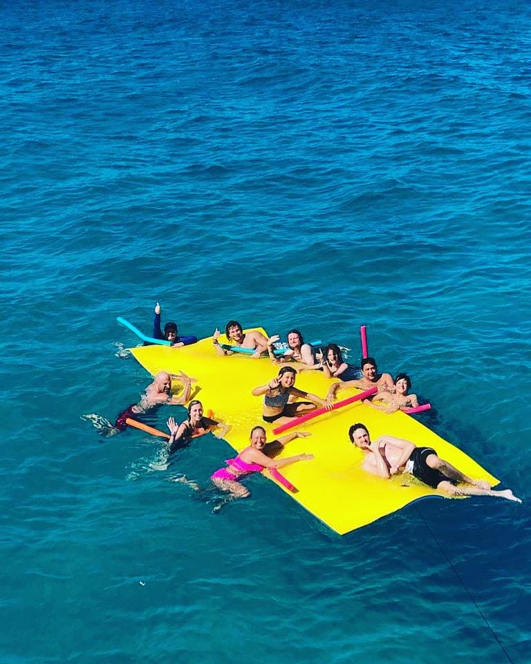 The sail runs approximately five hours. The yacht is spacious, properly equipped, and includes his-and-her restrooms — a detail that matters on a half-day excursion.