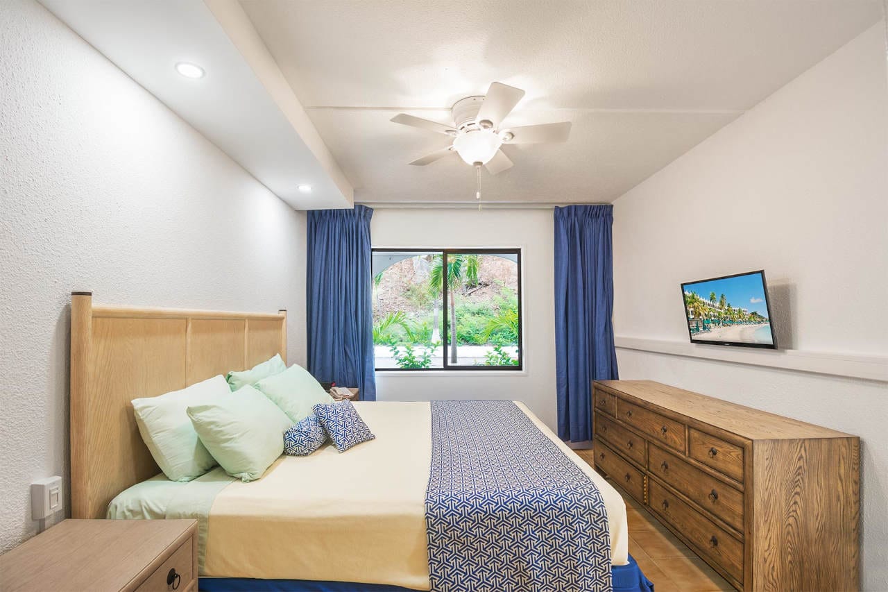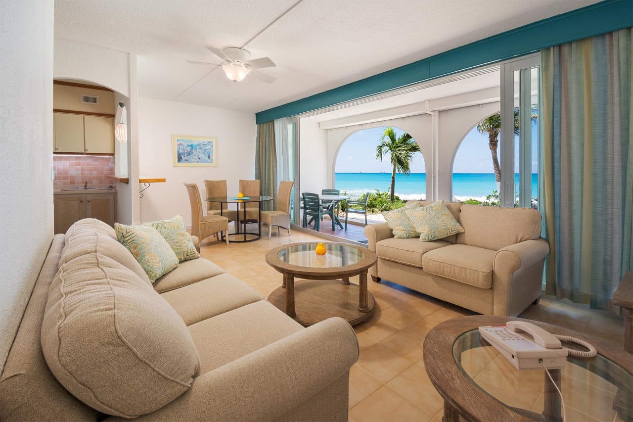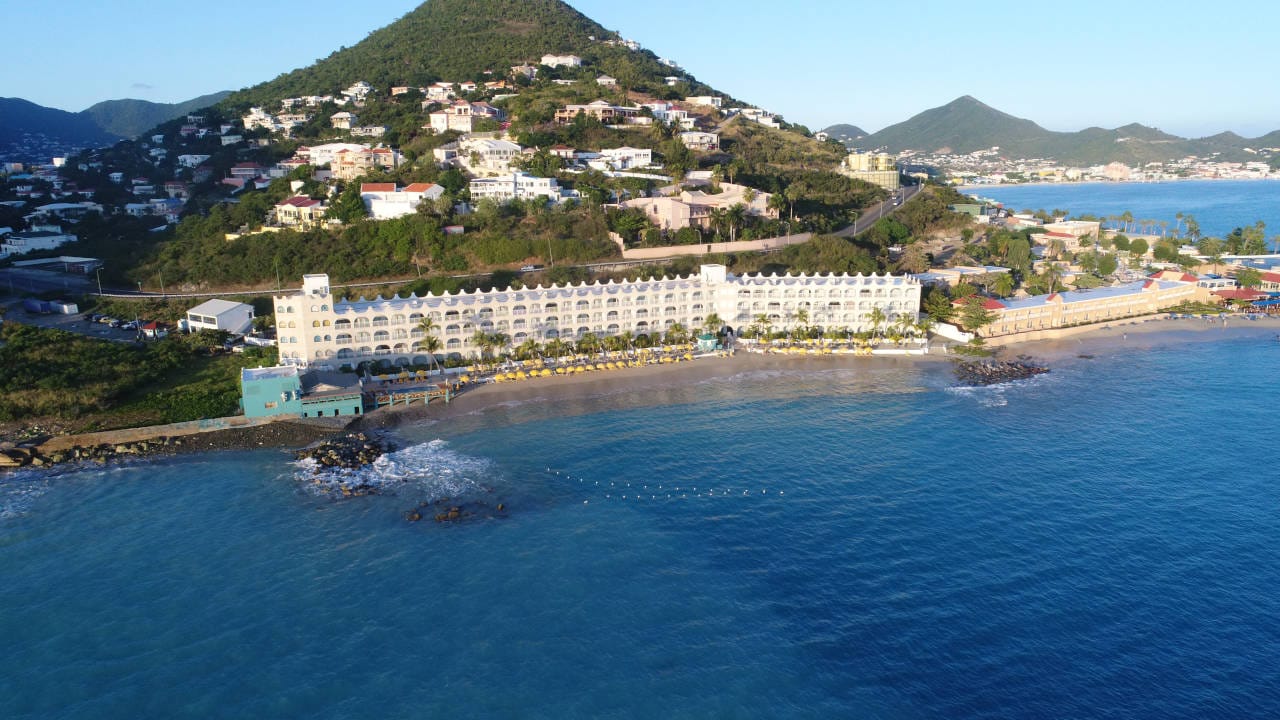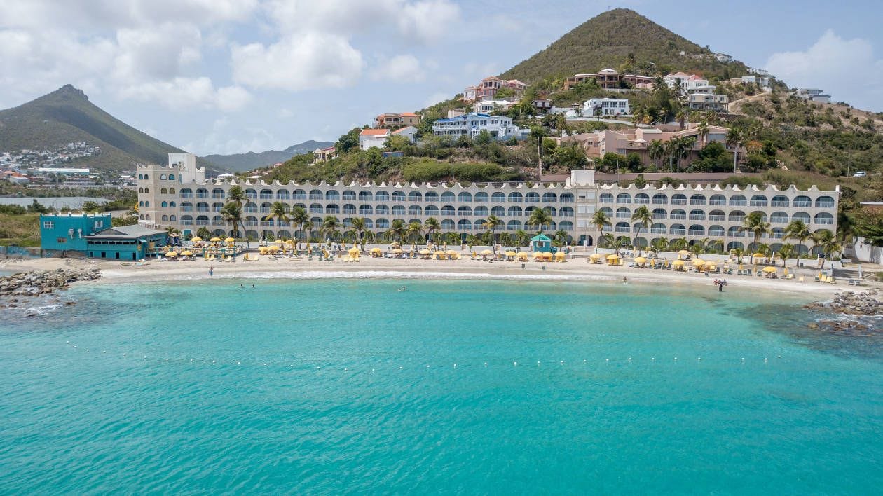 All suites are air-conditioned and include high-speed WiFi, flat-screen televisions in both the master bedroom and living room, and daily housekeeping. The hotel combines traditional hotel units with timeshare and condominium facilities. Philipsburg is three minutes by car. The airport is eighteen minutes. The beach is directly in front of you.